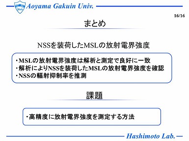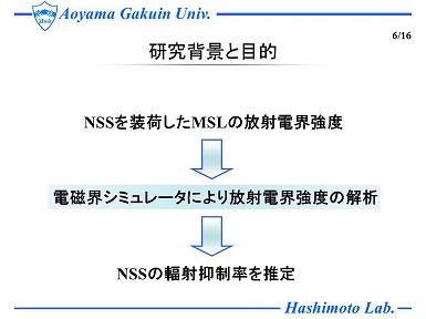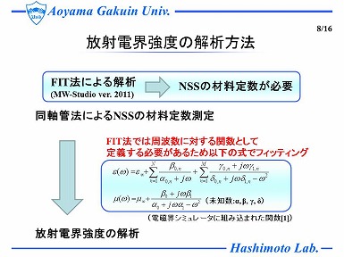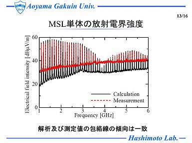 情報技術装置から発生する放射妨害波を抑制する方法の一つとして、ノイズ抑制シート(以下NSS)が使用されており、そのNSSの放射抑制量の測定法は、国際規格IEC62333によって定められている。しかしながら、放射抑制量の大きなNSSは、その抑制効果の評価時において放射波が極めて大きく減衰することから、 測定不能になる問題がある。そこで、まず、FIT 法を用いた電磁界シミュレータを用いて、MSL単体や、それにNSSを装荷した場合における放射電界強度の解析を行い、測定結果と比較した。そして、MSL単体において解析と測定の放射電界強が良好に一致することを示し、さらに、放射抑制量の大きいNSSを装荷した場合における放射電界強度の解析から抑制効果の大きいNSSの特性を定量的に推測した。