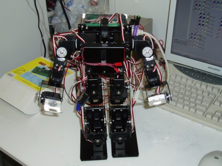 本研究室では、二足歩行ロボットの製作とその制御を行っています。下記に、最近導入した二足歩行ロボットがあります。音声認識、音声合成、画像認識、動作制御などが行えます。