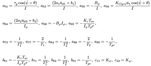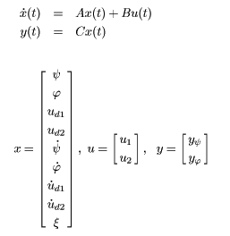 ヘリコプターの線形化システム方程式は以下の通りである。