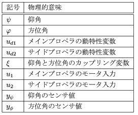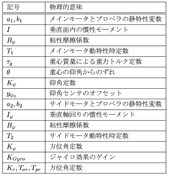 ここで、各変数、システムパラメータは以下の表の通りである。